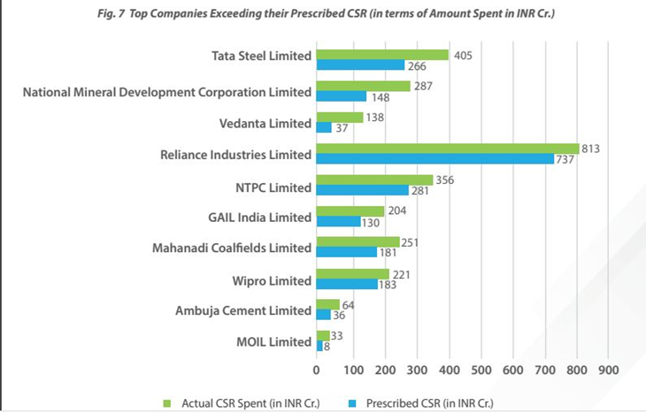 As per the “Indian CSR Outlook Report of 2022,” Tata Steel Ltd. is at the top of the list of  large  companies exceeding their CSR spending in the Financial Year 2021-22.[29]