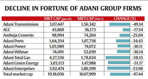 In the given case, Hindenburg Research established by Nathan Anderson in 2017 is a scientific monetary research firm which examines equity, credit and derivatives. It has a history of tracking down corporate facades, crimes and putting down wagers against the organizations. The Hindenburg Report submitted on January 24, 2023 it stated that during their 2 year investigation they discovered evidence of INR 17.8 trillion (U.S. $218 billion) Indian conglomerate Adani Group has engaged in a brazen stock manipulation and accounting fraud scheme over the course of decades.The Hindenburg research has blamed the Adani Group of companies for stock market manipulation , bookkeeping frauds , and utilizing improper tax havens  and shell organizations to oversee reserves , altogether affecting the financial market and it neglected to uncover exchanges with related parties and other significant data in repudiation of the guidelines outlined by SEBI. The accompanying picture shows the impact of the Hindenburg report on the financial market price of the shares of the Adani group, thus shows how the report has ridden the stock prices to the ground and depicts the huge losses caused to the entire group.
